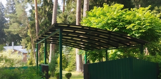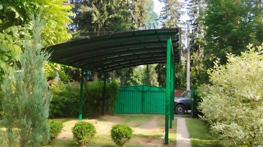 Полуарочный навес из зеленого поликарбоната для дачи Арт-667